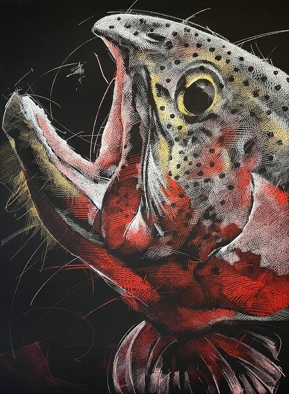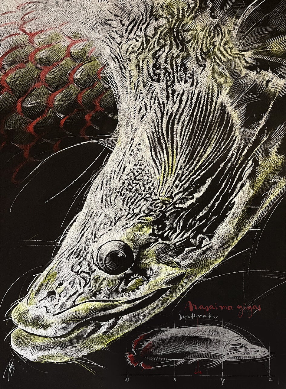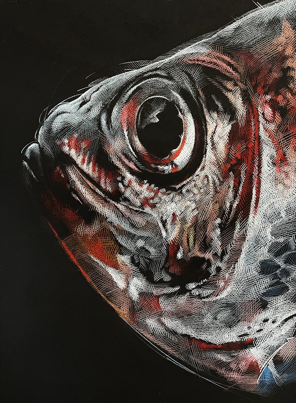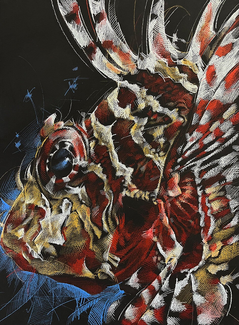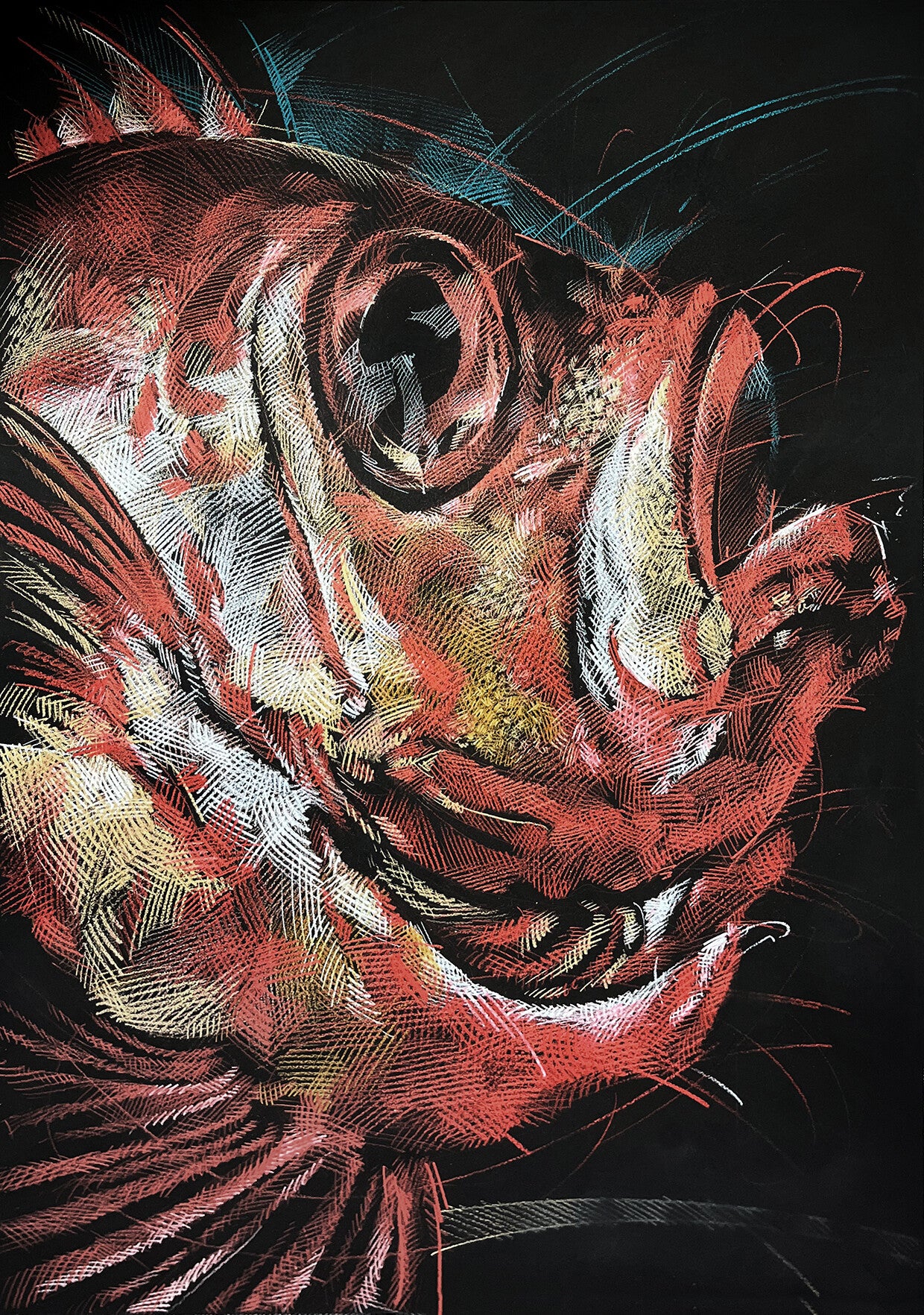 Striche bilden den elementaren Grundsatz zu Martin Bührers Zeichentechnik. Mit simplem Weiss- oder Buntstift werden auf dunklem Grund,